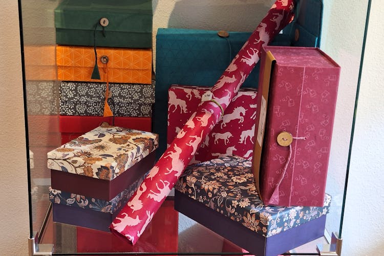 ...finden Sie bei uns schöne Schachteln in vielen Größen und besondere Geschenkpapiere.
